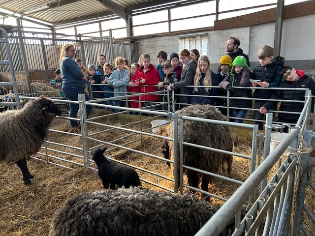 Am Mittwoch, den 25.02.2026 waren wir, die Klasse 5b, auf dem Biobauernhof Rocholl. Dort haben wir gelernt, was ein Bio-Bauernhof ist und warum er sich von anderen Bauernhöfen unterscheidet. Außerdem ist der Hof Rocholl in Solingen-Höhrath kein gewöhnlicher Bio-Bauernhof. Er hat nämlich die Auszeichnung ,, Arche-Hof“ erhalten. Das heißt, dass auf dem Bauernhof Rassen gezüchtet werden, die vom Aussterben bedroht sind. Unter anderem gibt es auf dem Hof das Rauhwollige Pommersche Landschaf und eine Arenberg-Nordkirchener-Ponystute.