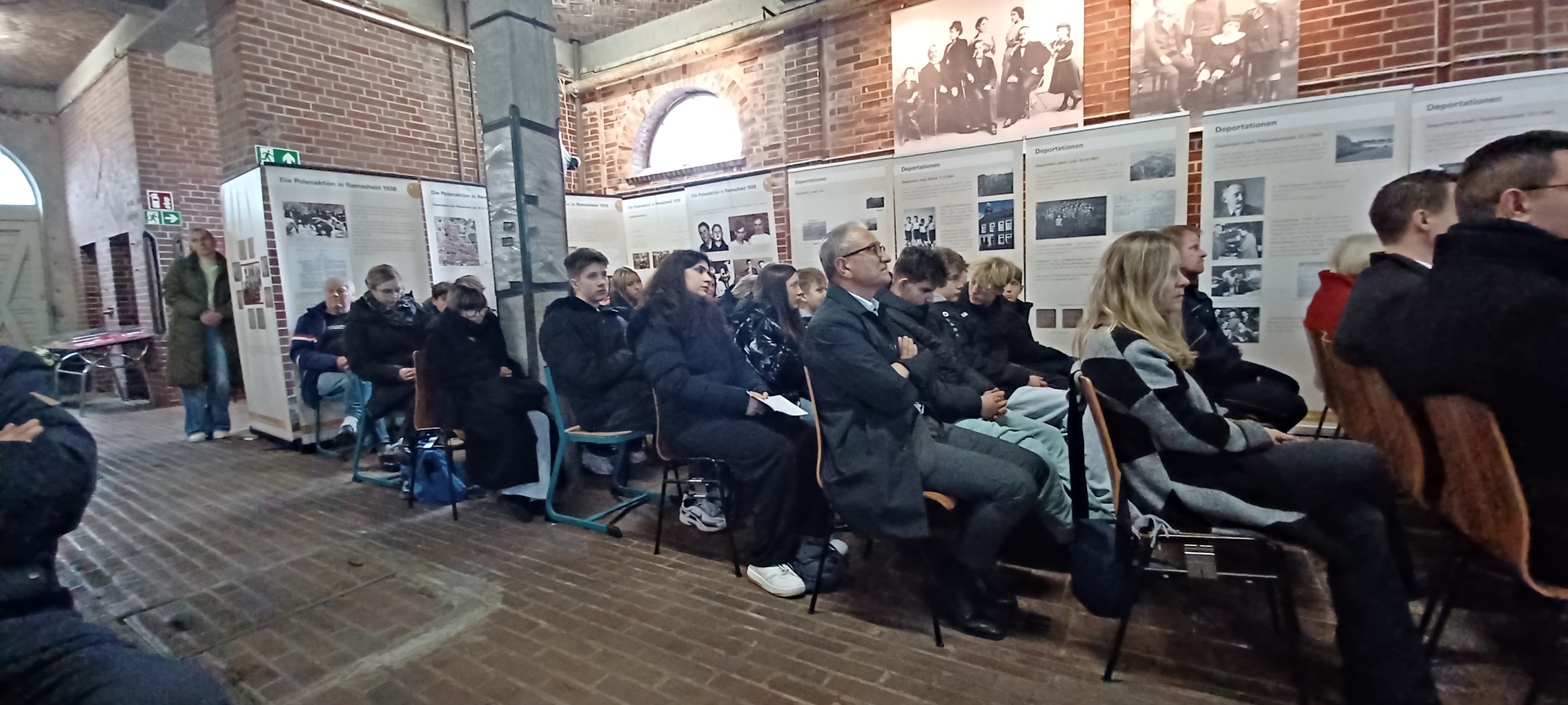 Am 10.11.25 waren die Klassen 9b und 9c bei der Gedenkveranstaltung zu der am 9.11.1938 stattgefundenen Pogromnacht. Für die Leibniz-Schülerinnen und -Schüler der Jahrgangstufe 9 war es zunächst ein ganz normaler Ausflug während des Unterrichts, doch für die damaligen jüdischen Schülerinnen und Schüler war es eine sehr schlimme Veränderung. Ihre Synagogen wurden in Brand gesetzt, ihre Familien wurden gefangengenommen, gefoltert und teilweise sogar getötet. Um den damaligen Opfern Respekt und Ehre zu erweisen, nahmen die Schülerinnen und Schüler an der Gedenkveranstaltung im „Pferdestall“ in Remscheid teil.