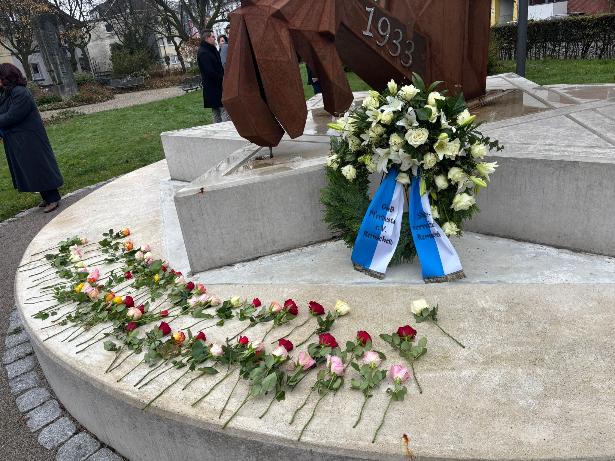 Nach mehreren schönen Ansprachen, einem Gedicht, vorgetragen von Schülerinnen der Geschichts-AG der EMMA, Musikeinlagen und einem originalen Interview aus den 1980er-Jahren durften die Schülerinnen und Schüler noch Rosen auf der Skulptur am Quimperplatz zum Gedenken ablegen.